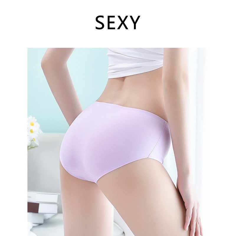 1/3 PCS Ice Silk Panties Seamless Women Plus Size Lingerie Mid Waist Plain M-XXL