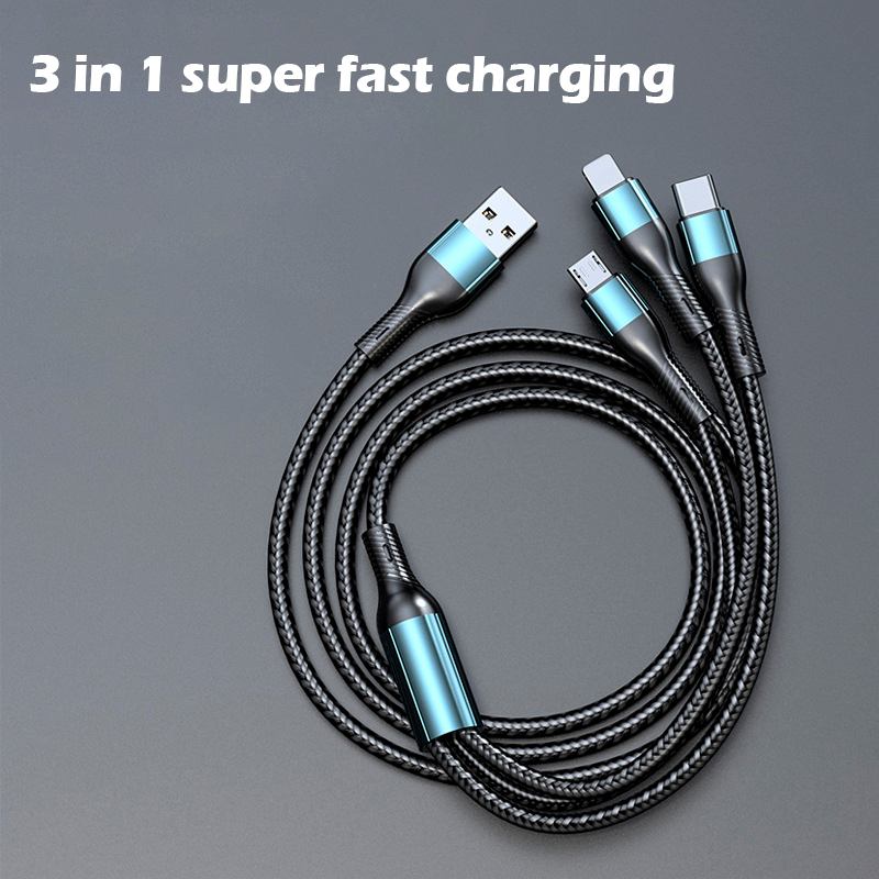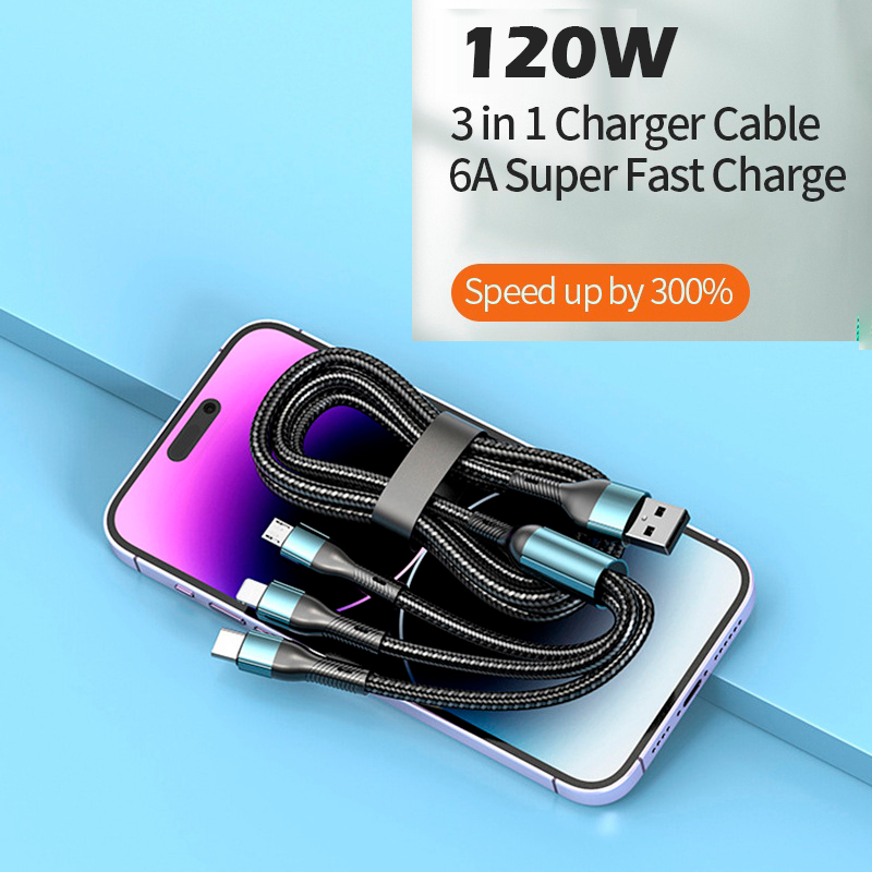 120W Usb Fast Charging Data Cable Universal 3 In 1 Multiple Usb Cord With ,Type-C, Micro
