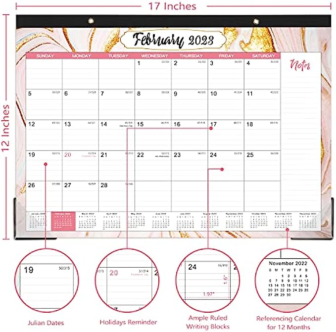 SUFFICIENT LINED BLOCKS - This desk calendar 2022-2023 offers you the large, ruled daily blocks, so the important things can be recorded on this desk calendar to remind you of them. Each month features daily block( 1.8" x 2") with Julian dates and holidays.And it also contains the notes section, you can record some extra content.