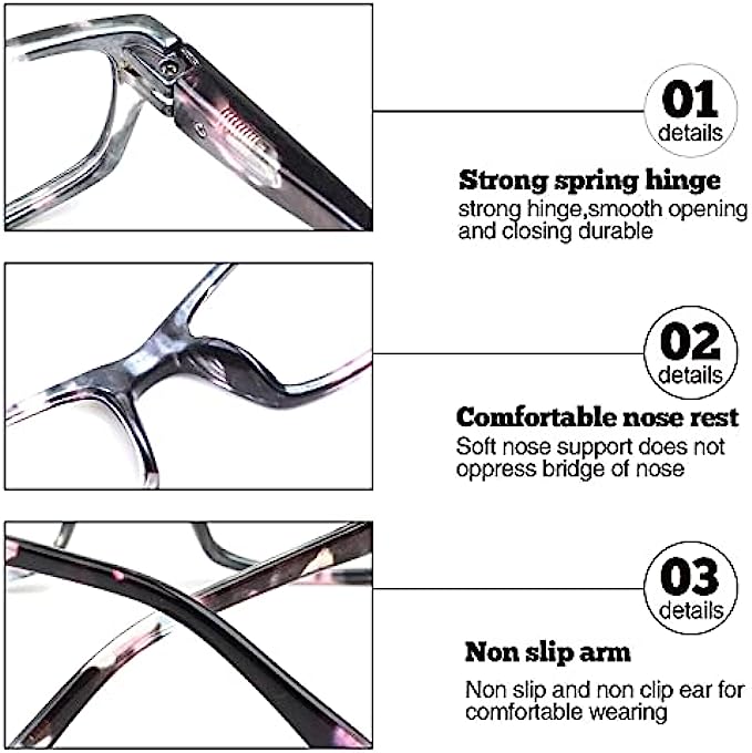 • 【5 pairs Computer Readers for Women】:5 pack Included in a Set (Comes with a cloth bag and cleaning cloth), you can place a set of glasses where you need to read, which is convenient for daily use or which can be a exquisite gift sending to your families and friends.