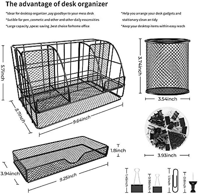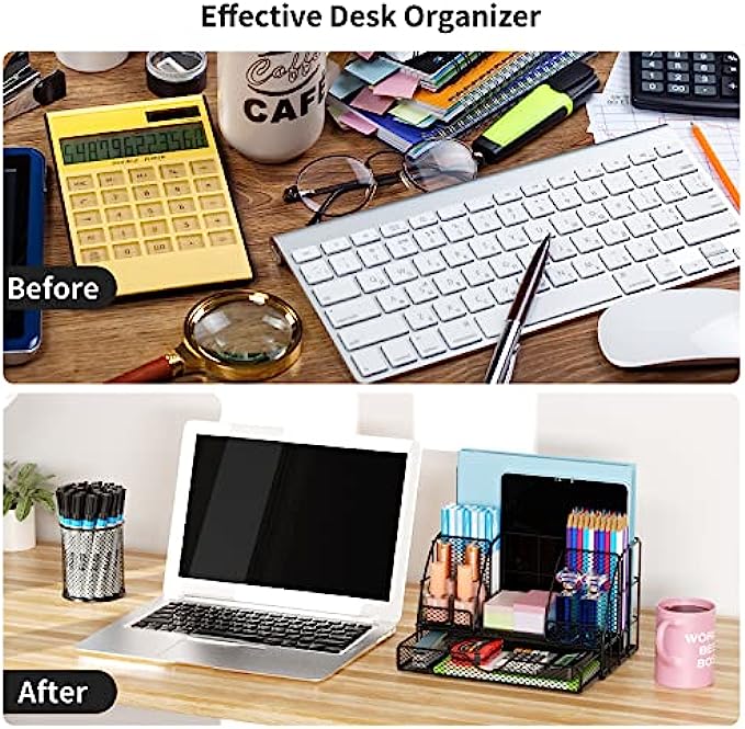 • 【Office Supplies Organizer Space Saving】: Desk organizers has enough storage space to accommodate your desk supplies,as folder, pens, post-its, rulers, business cards and more, also good for organizing makeups and small household items; keep it organized, easily find anything you need.