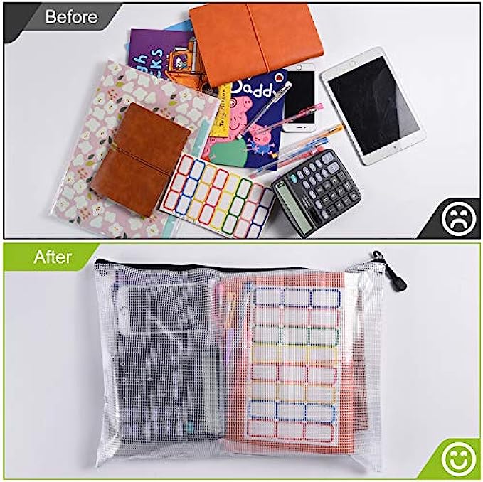 • 【Wide Application】Can be used as a perfect gift for company employee, students, teachers, travelers and people who need it. What's more, perfect for store office supplies, like papers, envelopes, board game, puzzles etc. also can use in home, travel and organizing. But, NOT suggest some shape objects, like scissors, etc. which will pierce the zipper bags.