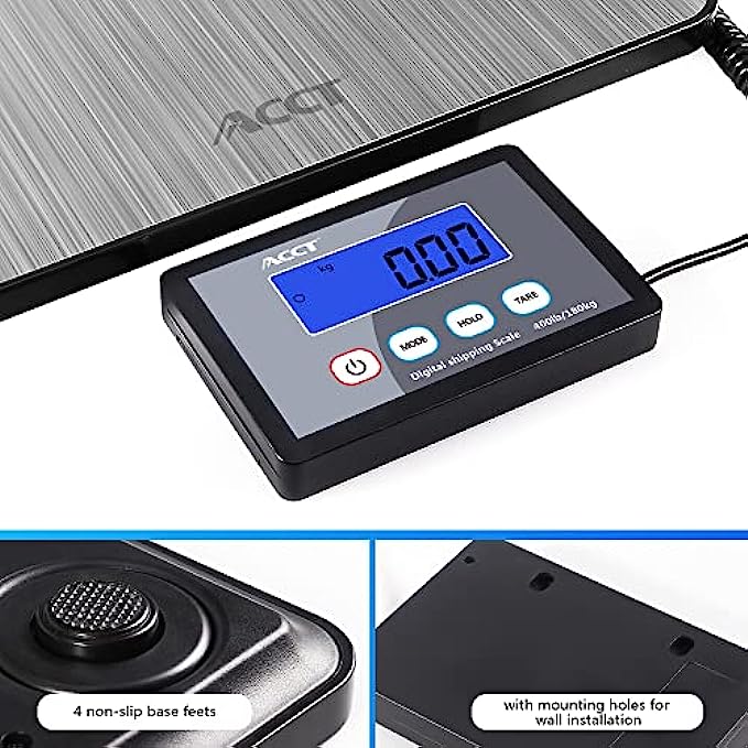 ACCT Postage Scale 400lb, mail scale, Digital Postal Scale with hold /auto-off/tare function, shipping scale for packages/small business/luggage/office, heavy duty scale with batteries & power ada