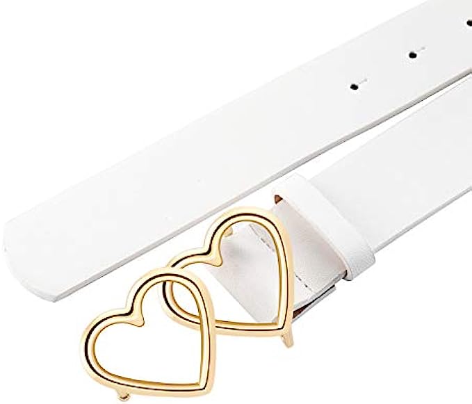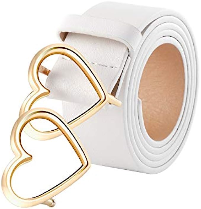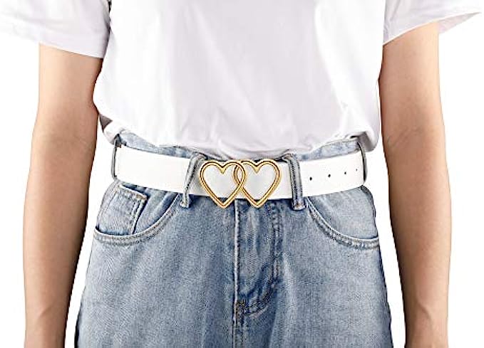 Ayliss Women Leather Waist Belt Fashion Casual Jeans Belt with Double Heart Shape Buckle Dress Pants