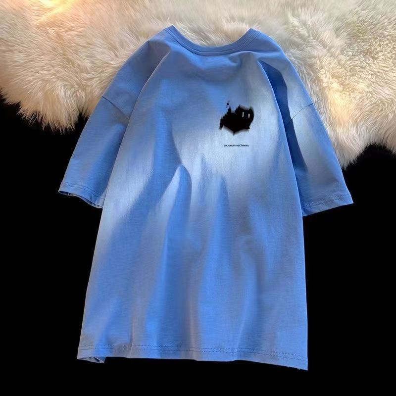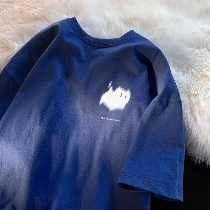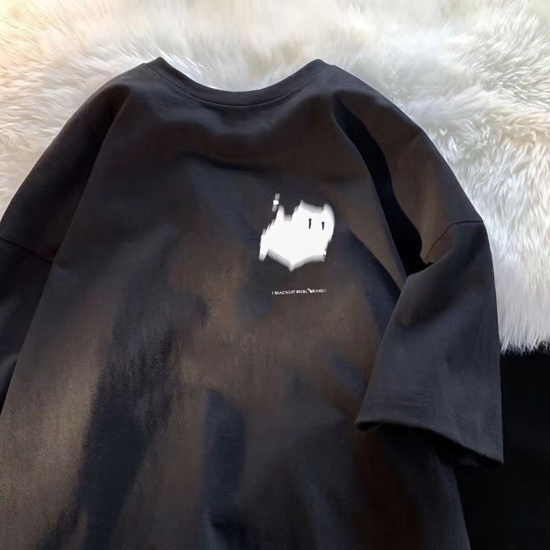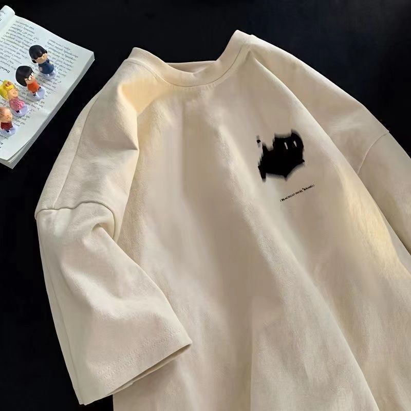 Fast Shipping 100% Cotton t-Shirt Hong Kong Style American Style Street Wear Short-Sleeved Men's Top Clothes Summer Loose Street All-Match Korean Version Half