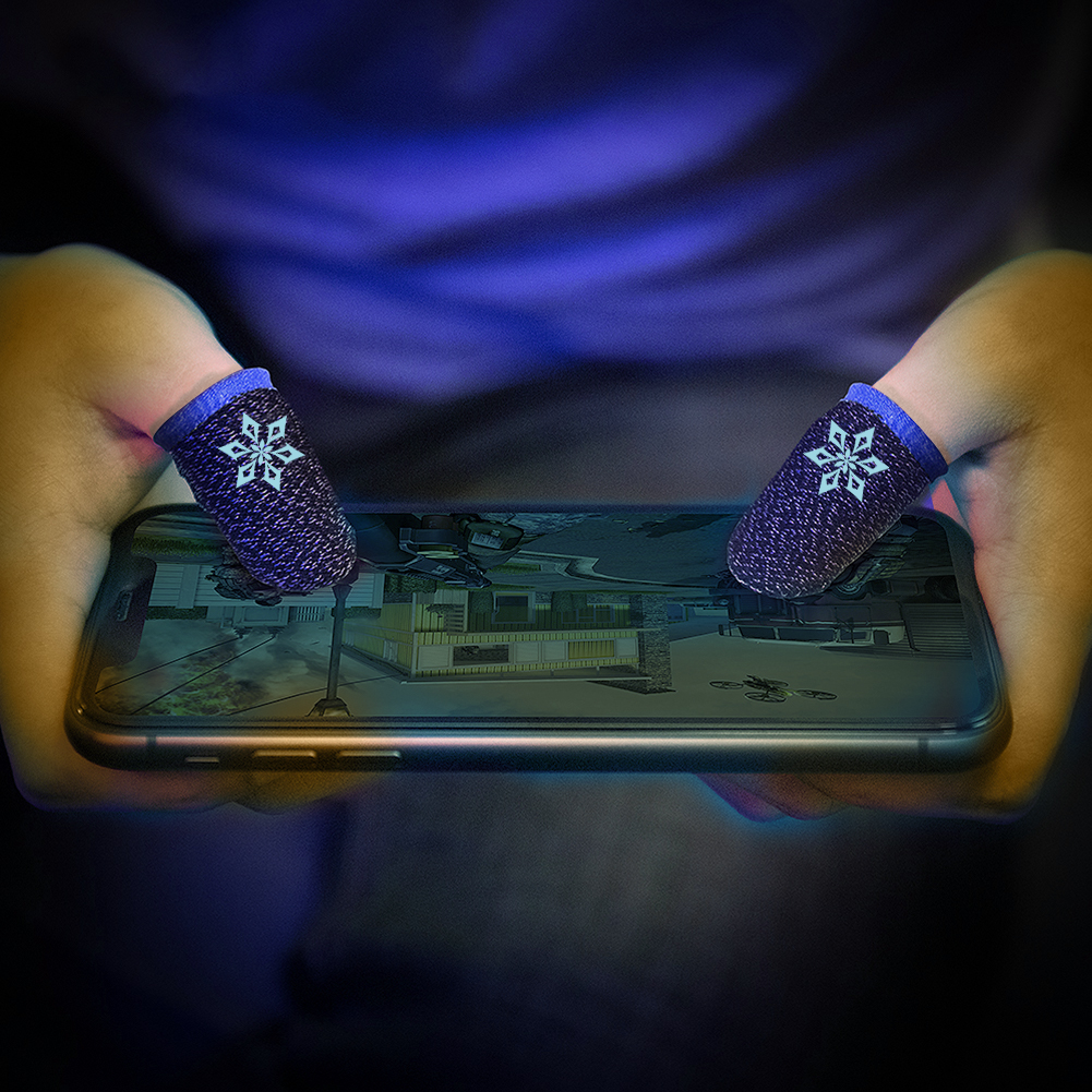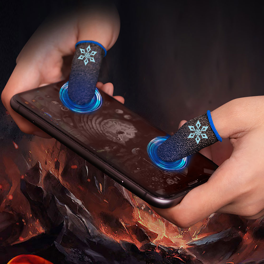 【Genshin】BlueWow Finger Sleeves for Gaming Mobile Game Controllers Finger Thumb Sleeves, Anti-Sweat Breathable Seamless Touchscreen Finger Covers Silver Fiber for Phone Games PUBG