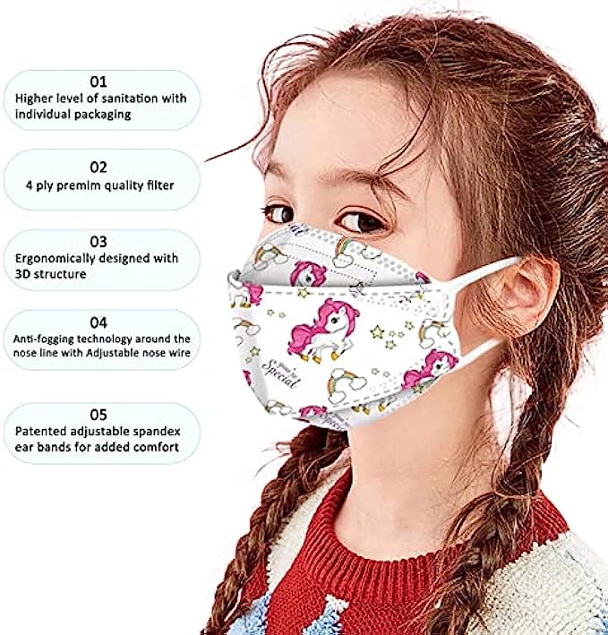 LOGAO【60 Packs Individually Packaged】 of KF94 Disposable Fish Mouth Type Child Safety Four-Layer Protective mask, Kids Disposable Face Masks Comfortable Breathable ,and Protection Rate of 95% ,Suitabl