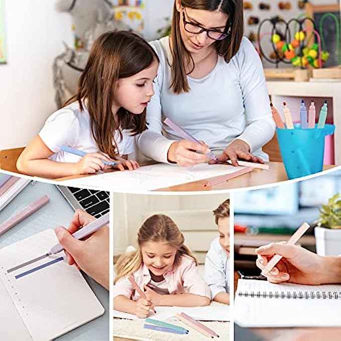 • ? Smooth Writing: The square pen body design feels comfortable, mild highlighters is not easy to roll when using, and the smooth ink is not easy to dry up. Also, the ink doesn't bleed through paper, even on the darker colors; You can use it for a long time.