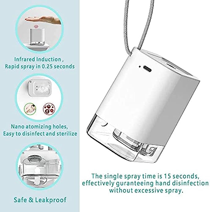 • ❤️Portable: Leak-proof and lightweight, It can be carried in your bag and used anywhere.360-degree sanitizer spray, efficient sterilization. The transparent bottom case lets you know when to refill the 50ml capacity water tank. FCC certified, RoHS approved.