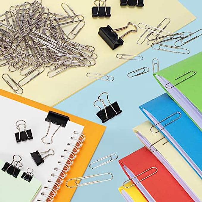 Unlimited Application: Paper Clips Binder Clips Set can help you organize messy documents, exam papers, flyers, contracts, envelopes, posters, tickets and more in your office, school and daily life; it can also be used as a bookmark, photo clip, food clip, daily DIY, compass, hook to hang headphones and mask, etc. Perfect for schools, offices, classrooms, home and personal use.