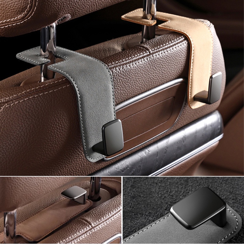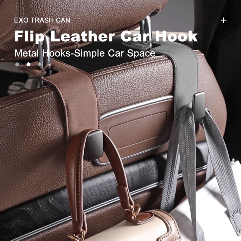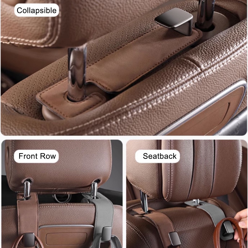 SEAMETAL Car Seat Headrest Hook Leather Metal Hook Storage Hanger Car Back Seat Foldable Hidden Hook Universal Car Interior Accessories