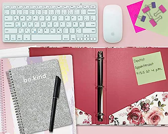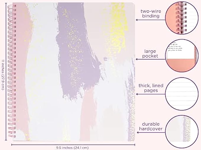 INTERIOR POCKET: Features a durable hardcover with a pretty brush stroke paint design and a double sided storage pocket to keep loose notes organized