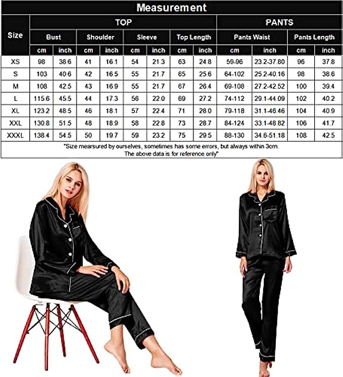 • Occasion: Women's Long Sleeve Silk Satin Pajamas Set, which is suitable for daily wearing and easy to match. Comfortable and suitable for lounging and sleeping, pajama party, girls day, bridal sleepwear, indoor, living room, bedroom, hotel, vacation, travel, and daily sleepwear.