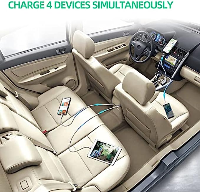 4 USB car charger is wide compatibility, compatible with iPhone series, iPhone 13 12 11 Pro Max X Xr 8 Plus SE2 iPad Pro, Samsung Galaxy series, Galaxy S21 S20 Ultra 5G S10 Note 20 10 A70 A50, Pixel Nexus, LG, Huawei, tablets etc.