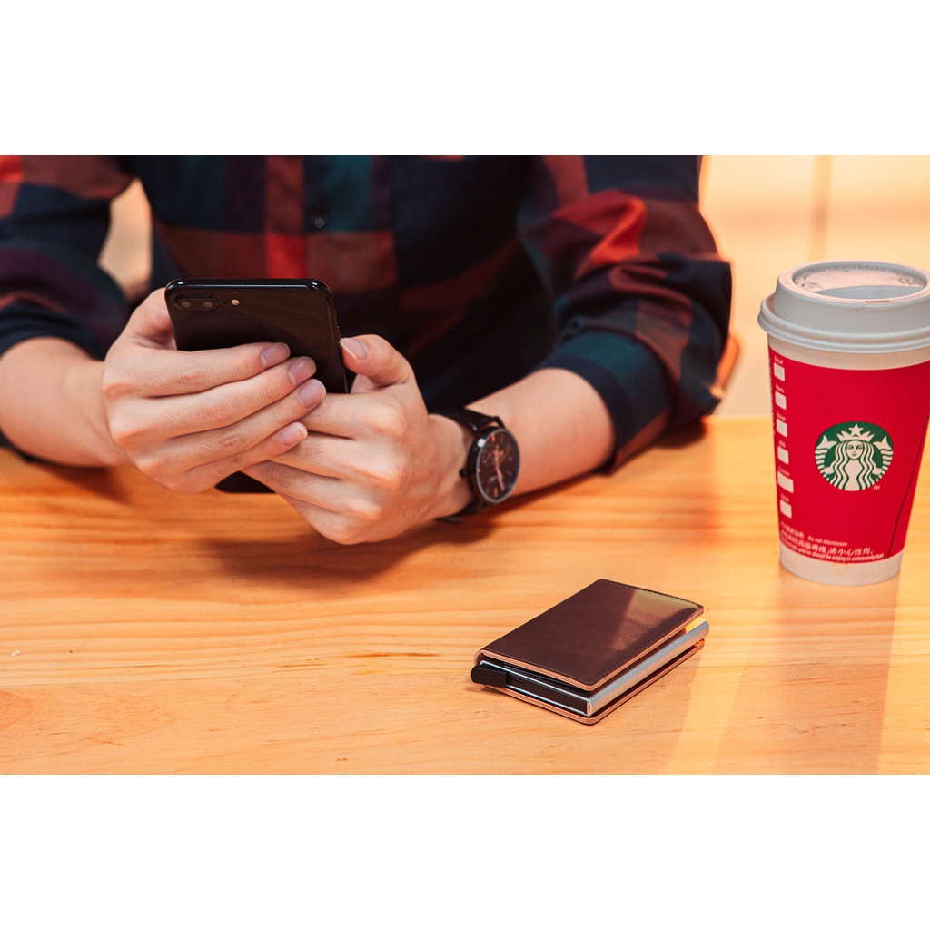 Wallet For Men PU Leather Rfid Mini Slim Card Holder Auto POP Up Aluminum Box