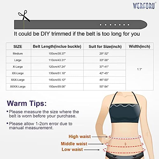 • High Quality Material --- This women plus size belt is made of quality leather that is pretty soft and comfortable to wear. Clear texture on the belt strap and smooth touch feeling. Our plus size lady belt is sturdy enough to be used for years.
