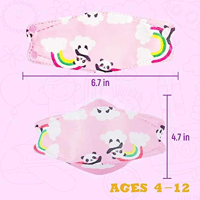 • Versatility: 50 pieces per box, 10 pieces per pack, 5 packs in total. These kids cartoon KF94 masks are suitable for office, home, bicycle, grocery store, hospital office and all public places. It's the perfect mask to navigate crowded airports, bus stops, shopping malls and busy city streets.